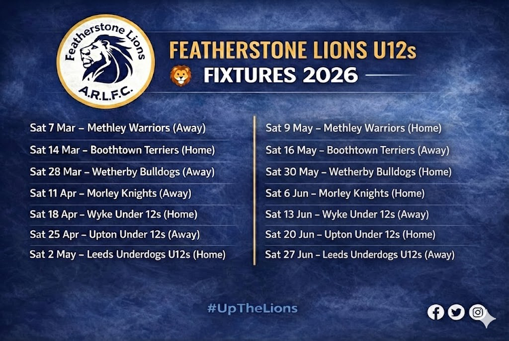 Featherstone Lions u12s - Fixtures and Results 2026